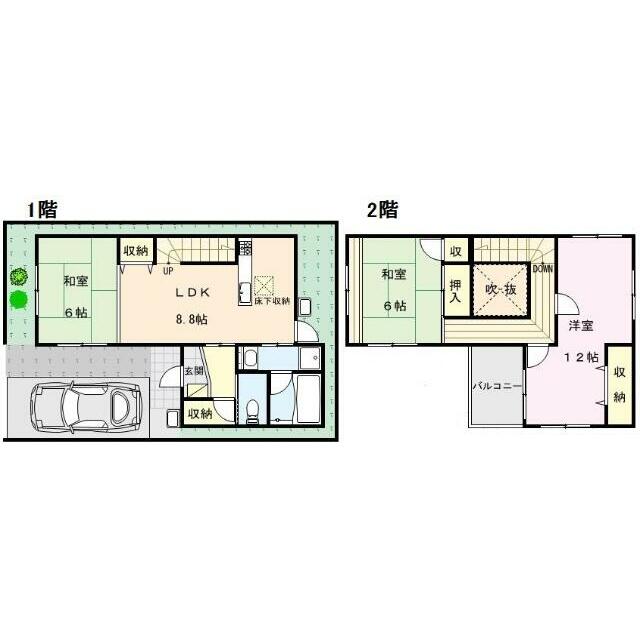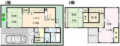 3LDK(和室6畳/和室6畳/洋室12畳/LDK8.8畳) |